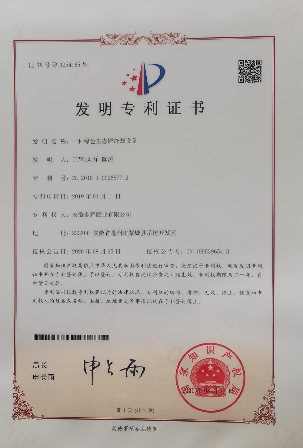 实用新型专利证书